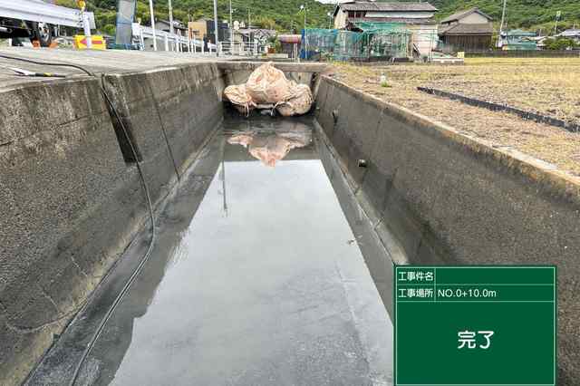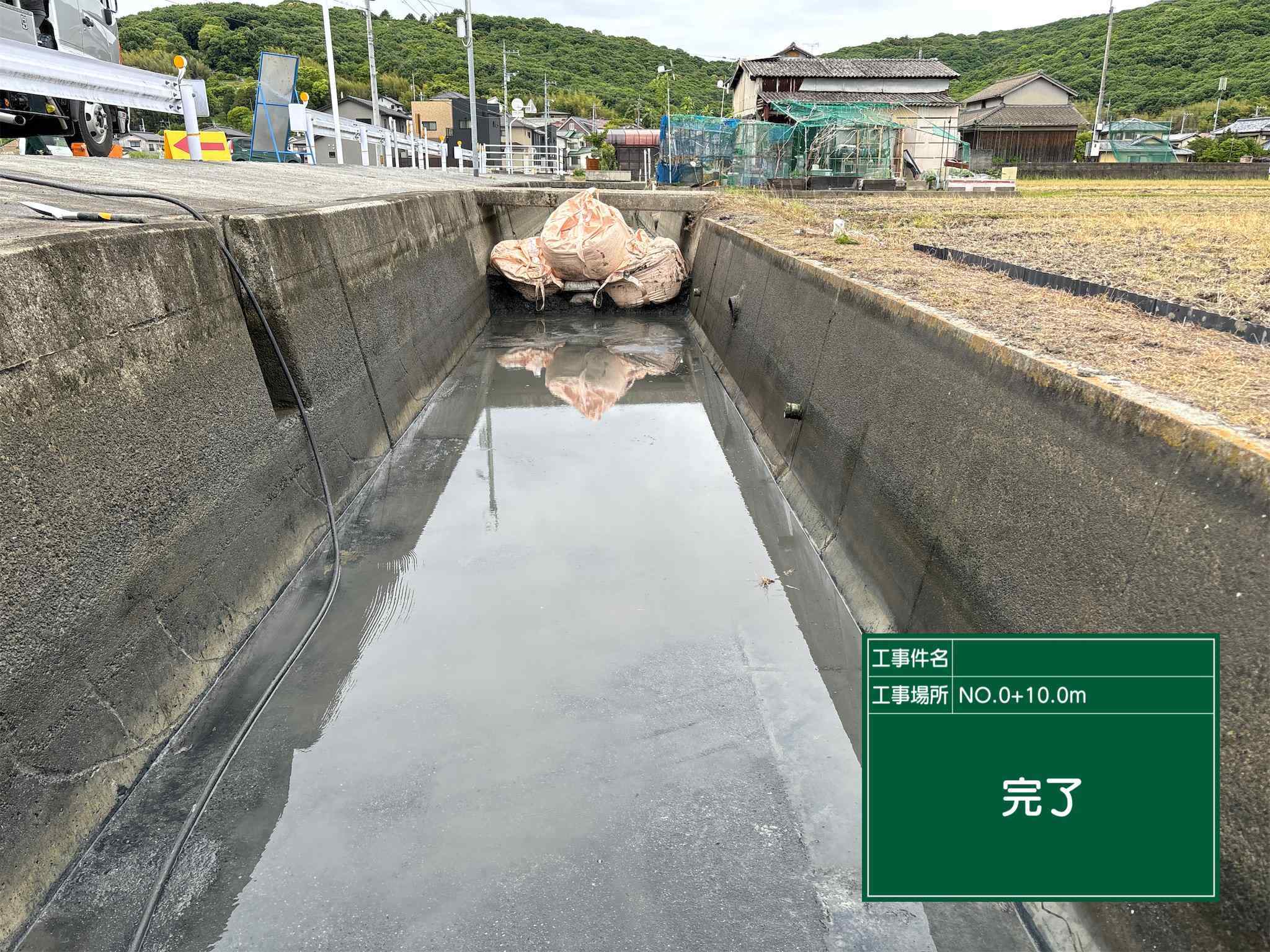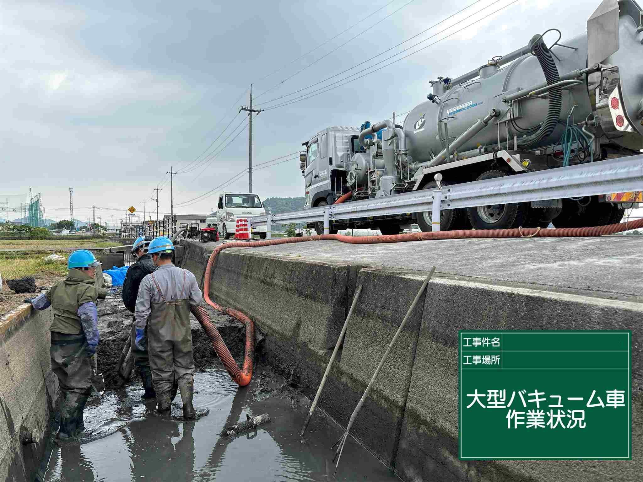 大型吸引車と高圧洗浄車を使用して水路清掃を行いました。
