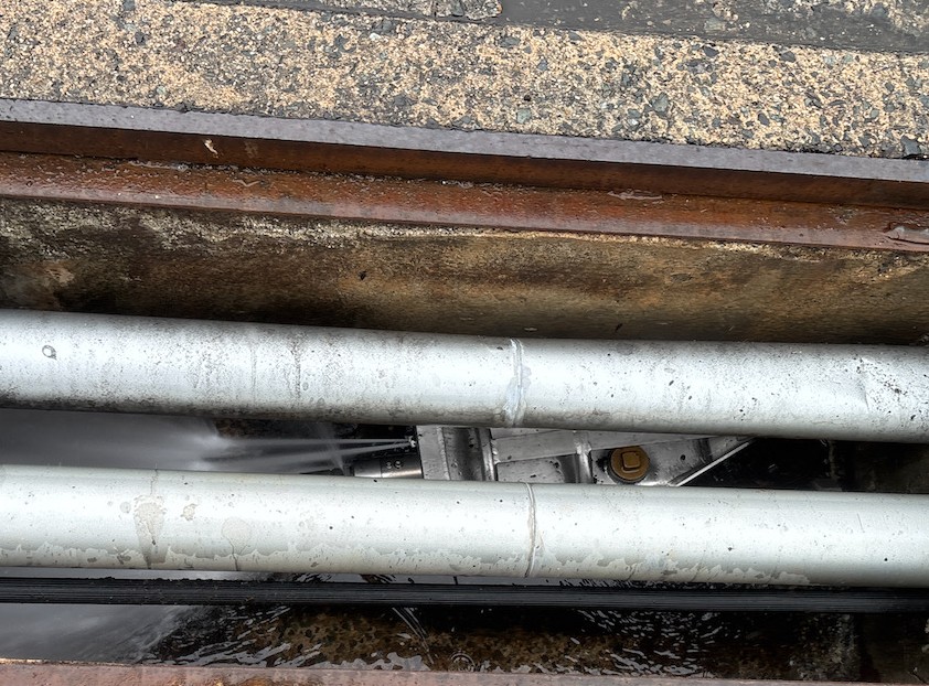 余り土砂の堆積が無い側溝は、フロアノズルという特殊ノズルを使う事によって、暗渠部分や配管が通っている側溝も綺麗に掃除出来ます。