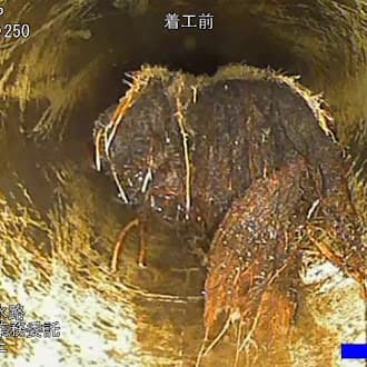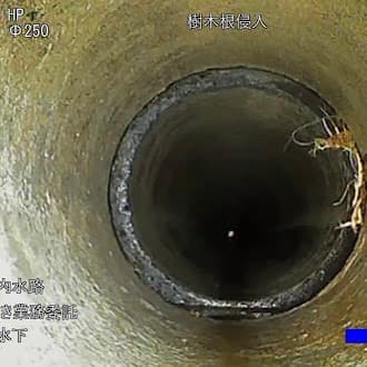まずは高圧洗浄車を使用し、草やゴミなど比較的除去しやすい汚れを高圧水流で徹底的に洗い流します!そして厄介な木の根には、通常の洗浄では太刀打ちできないため、特殊な破砕ノズルを装着した高圧洗浄機の出番です。管を傷つけないよう慎重に作業しながら、根っこを確実に粉砕・除去します。